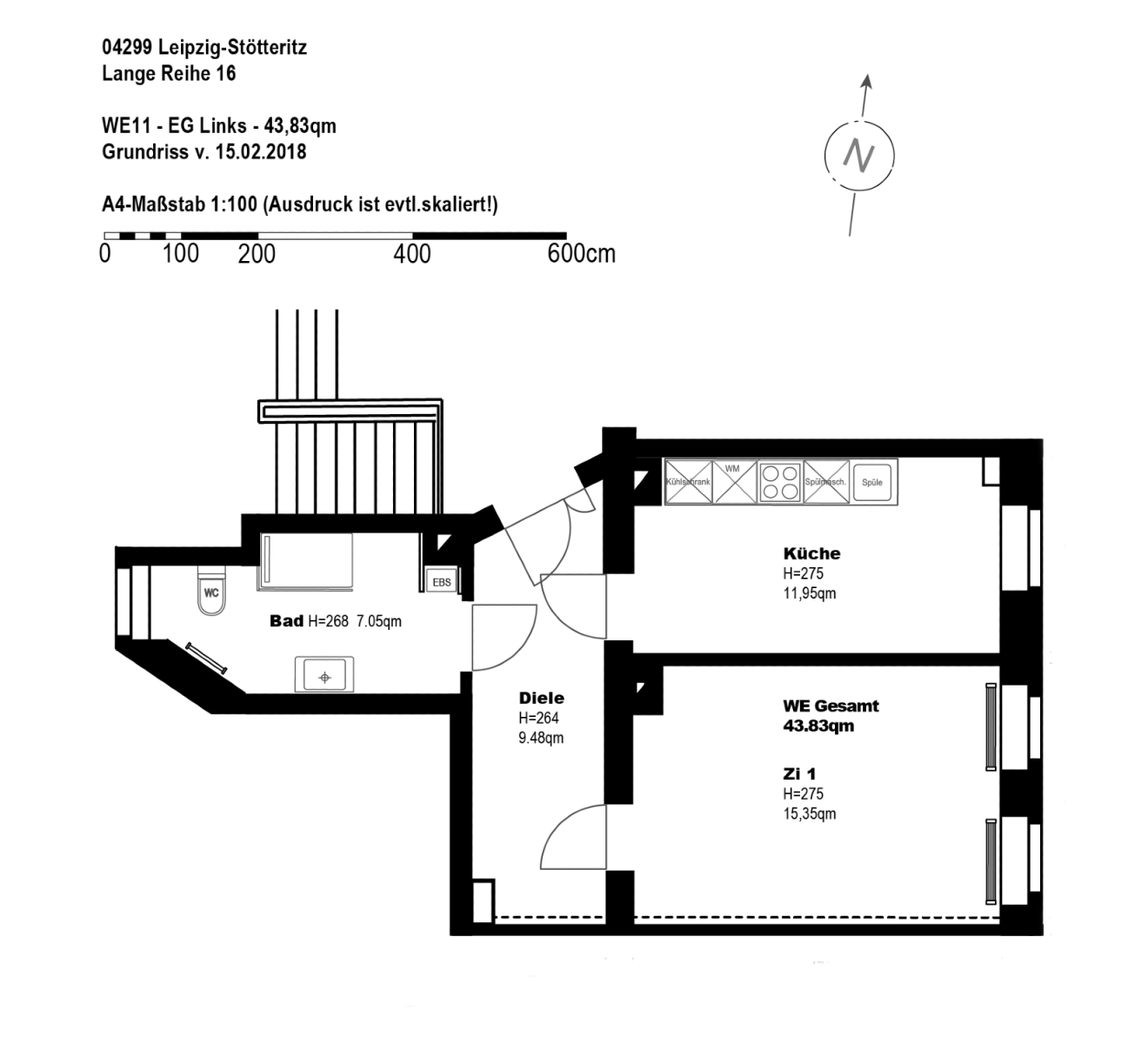 - WE11 EG Links - 43.83qm - 1 Zi., Bad, Küche / Keller ca. 7qm