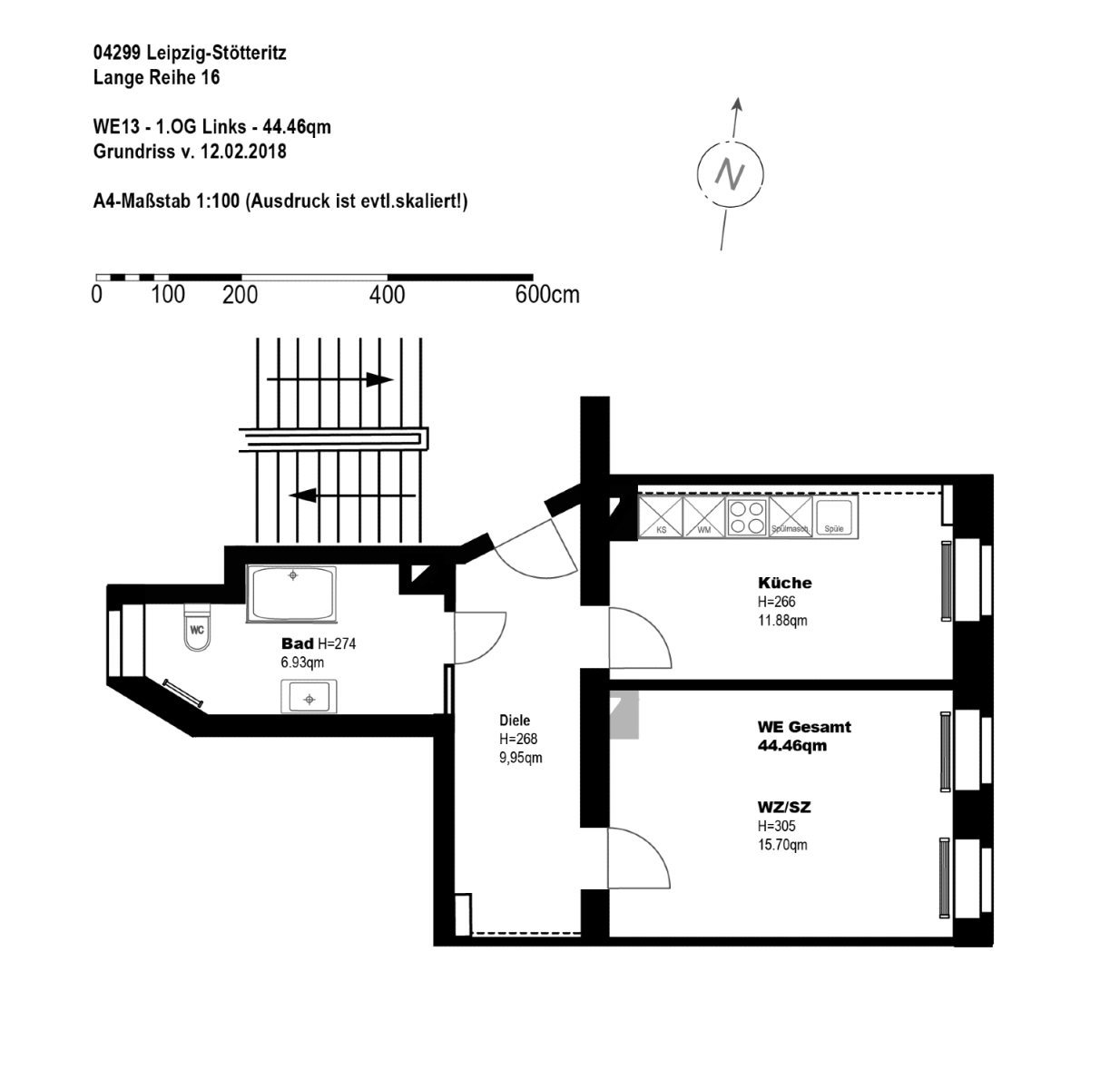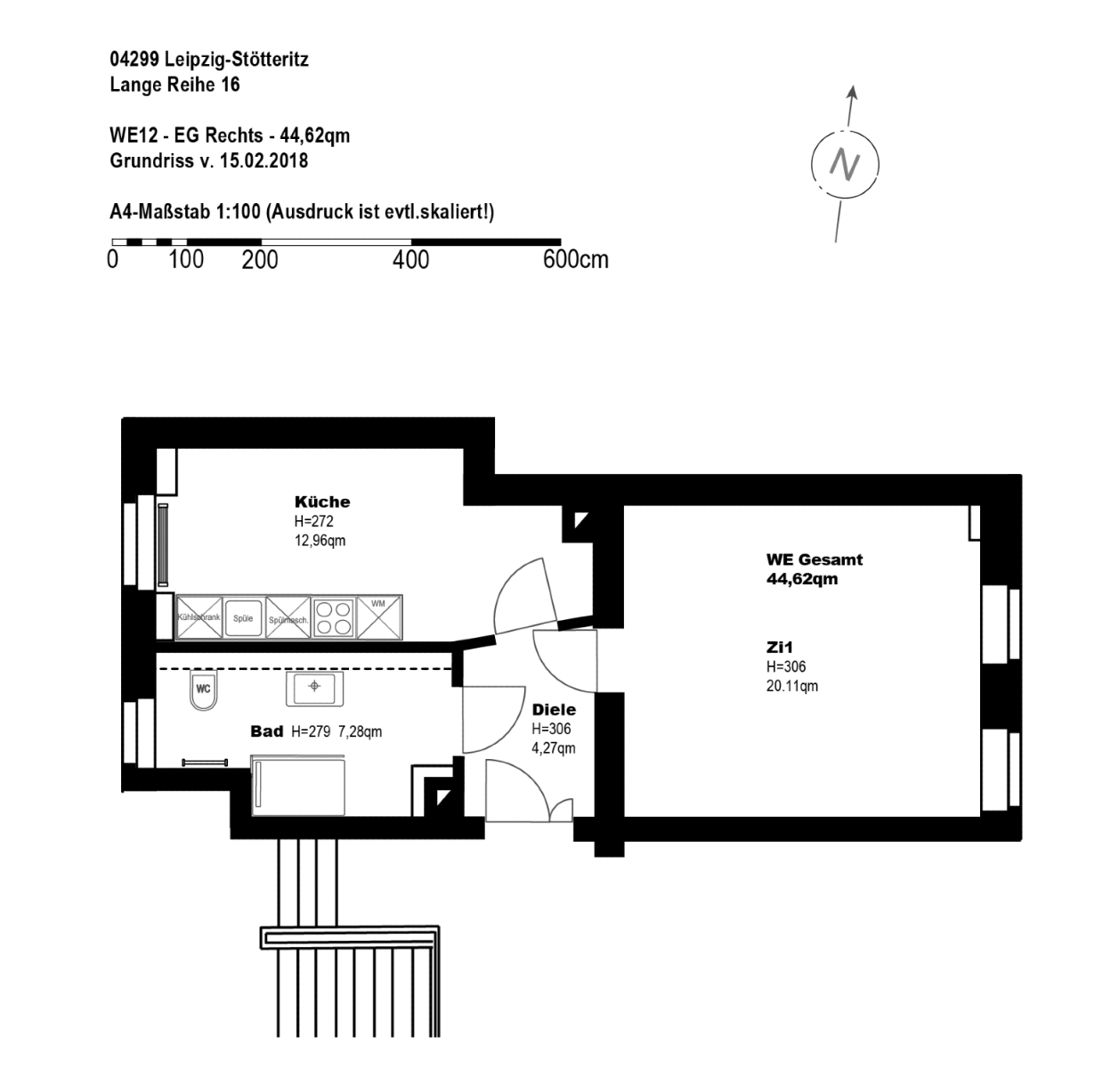 - WE12 EG Rechts - 44.62qm - 1 Zi., Bad, Küche / Keller ca. 6.5qm