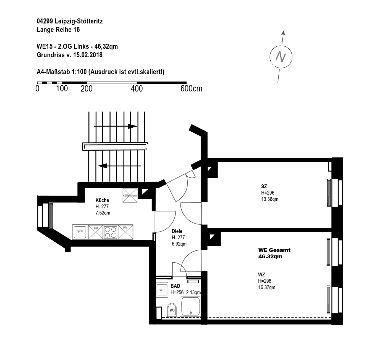 - WE15 OG2 Links - 46.32qm - 2 Zi., Bad, Küche / Keller ca. 7.7qm